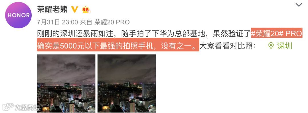 而作为DxOMark综合排名第二的荣耀20Pro,此前官方曾在线下甚至线上公开表示「荣耀20Pro是5000元以下最强拍照手机, 没有之一」,现在拍照比其更好的华为P30Pro价格降到了5000元以下,不知道算不算打脸自家荣耀脸呢?