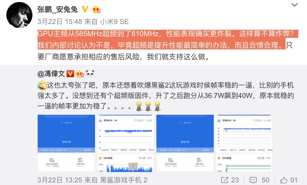 禁止超频,明面上是为了避免对手机硬件造成一定损害,但最主要的原因应该还是,避免官方超频打不过第三方超频而贻笑大方吧?之前小白实测搭载骁龙855的黑鲨2和骁龙855Plus的黑鲨2Pro跑分时也发现,黑鲨2不开启超频时跑分正常超855,但一旦黑鲨2开启超频模式,就迅速反超855Plus