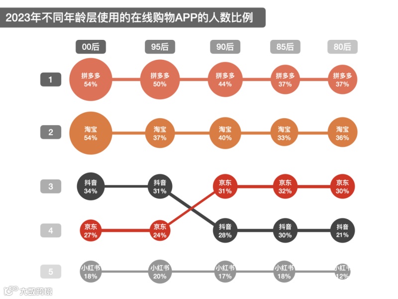 ▲ 不同年龄层使用购物APP人数比例(数据来源于DT商业观察)