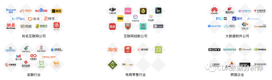 🌸全国30万数据分析从业人员,有10万在CDA数据分析师 🌺CDA会员俱乐部有1000个数据库,成为持证人即可获得相关数据信息 🌹未来两样东西最有价值:一个是数据,一个是GPU