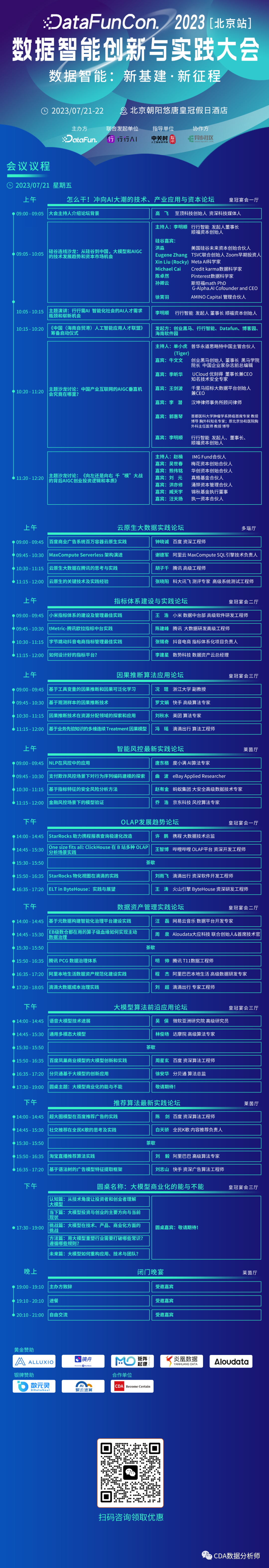 👉主题论坛:冲向AI大潮的技术、产业应用与资本、大模型商业化、指标体系、数据资产管理、AB实验、因果推断、智能风控、推荐系统、知识图谱等17个前沿主题