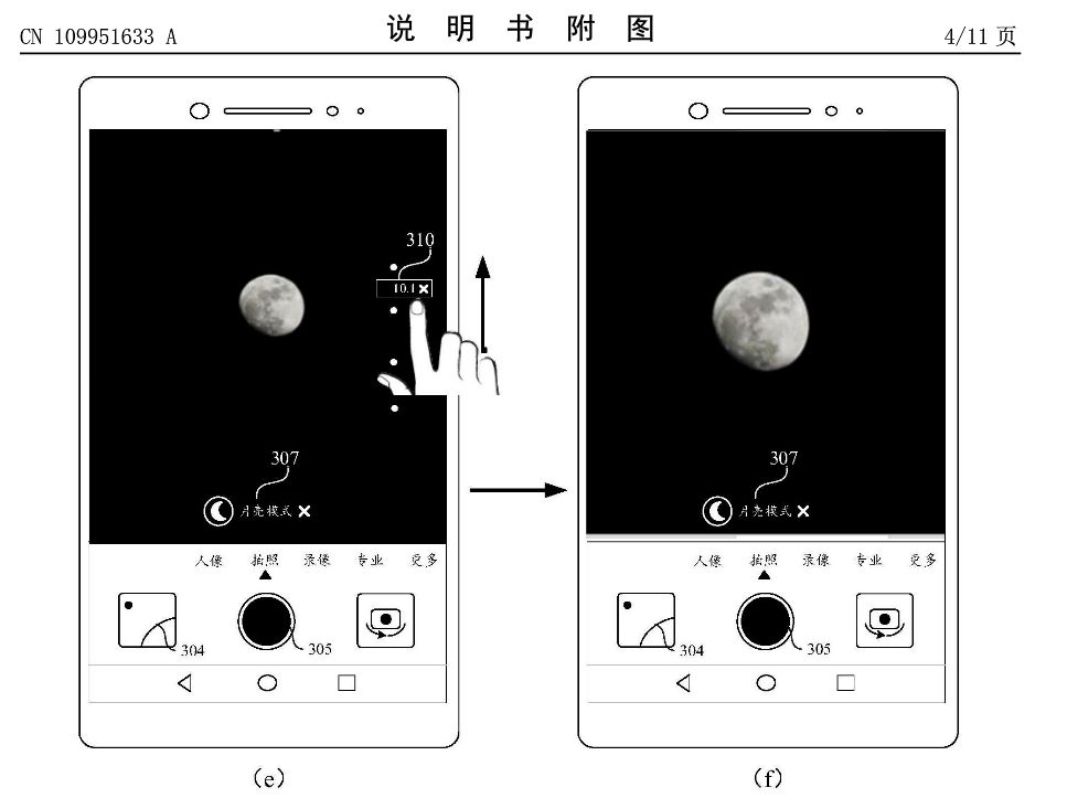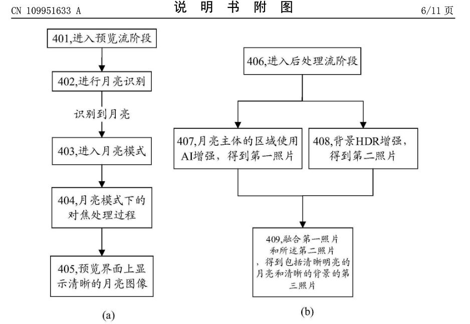华为表示该方法可以在普通拍摄模式下,或者非专业用户的拍摄过程中,拍摄出轮廓清晰、晶莹美丽的月亮,提高用户的拍摄体验。