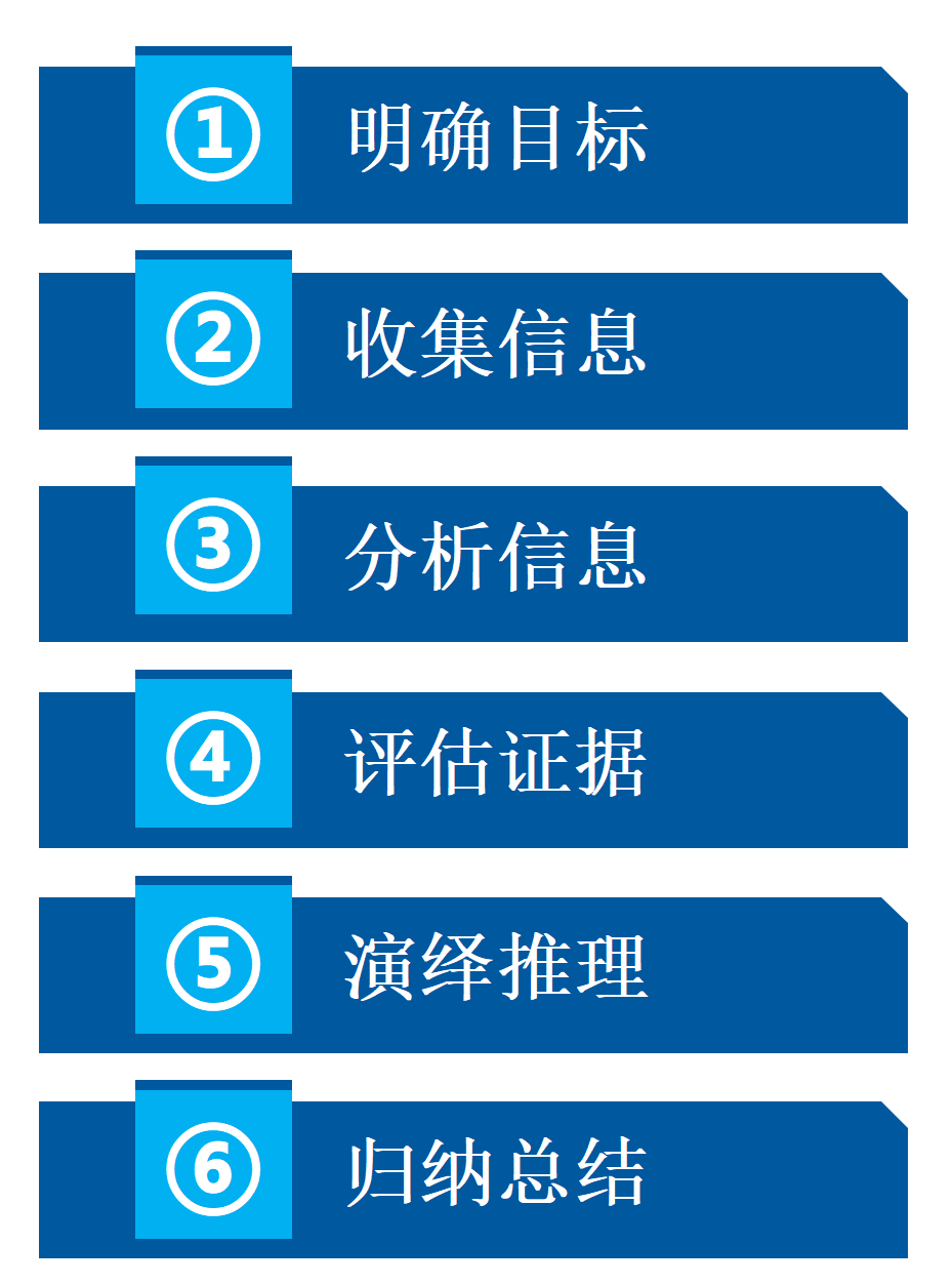 参考《学会提问》、《批判性思维》等书中介绍的方法,我总结了应用批判性思维的 6 个步骤。