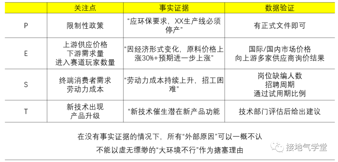 关注内部行动。我们常说,外部因素分析要看PEST,这四点太过虚幻,需要落实到具体指标,才好进一步分析(如下图)。