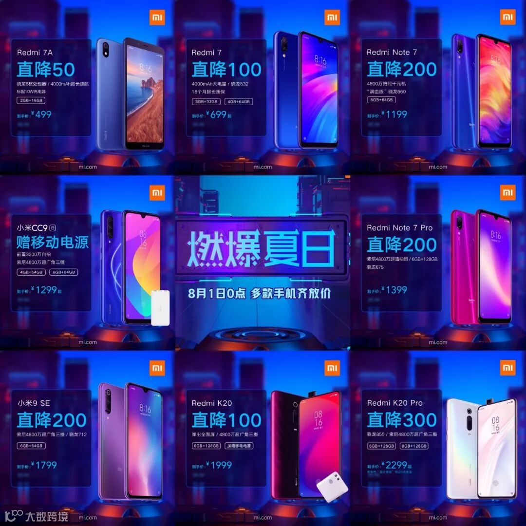 和vivo Z5都是骁龙712的小米9SE 6+64/128/8+128GB降价200/300/250(米9还是之前活动降价200起);骁龙730红米K20 6+64GB降价300,6+128GB降价100送充电宝;红米K20 Pro 128GB版本全系降价300元,64GB版降价400元,从发售价2499低至2099元到手。