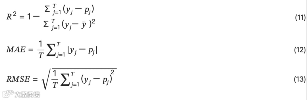 使用(R平方,拟合优度)对每个模型的预测结果进行评估和比较。同时,使用MAE(平均绝对误差)和RMSE(均方根误差)指标来综合比较各个模型的预测效果。模型计算的TIME(Consumption time)用来评价模型计算的效率。其中,MAE反映预测值与实际值的偏差,RMSE反映预测值与实际值之差的标准差。