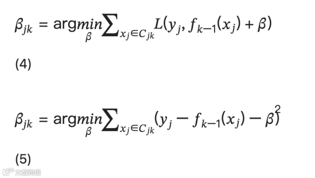 确定残差估计后,对CART回归树进行拟合,得到第k棵树的叶节点区域,对于每个叶节点区域,确定最小化相应损失函数的最佳拟合值。