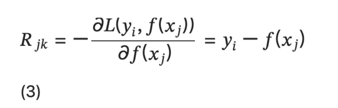 2: 构建了一系列 CART 回归树,使用梯度提升技术在其上拟合残差。在第次 (k= 1,2,…K) 迭代中,对于每个样本(),GBDT 指定负梯度损失价值作为剩余估计数。在本文中,我们选择最小均方误差作为损失函数。