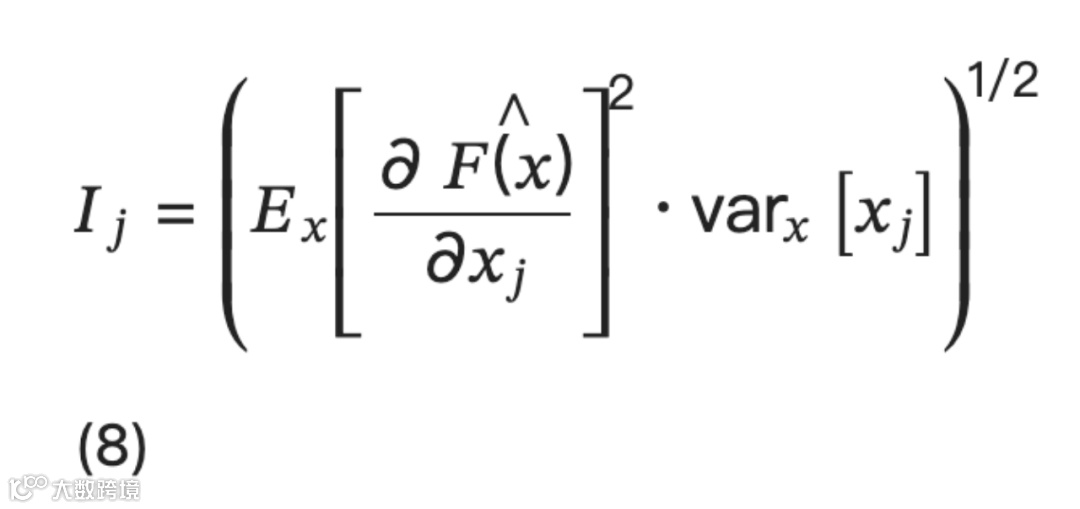 6: 特征重要性计算的原理可以用下面的方式表示:在近似的F(x)描述中,个体输入对F(x)变化的相对影响在上联合输入变量的分布可以表示为: