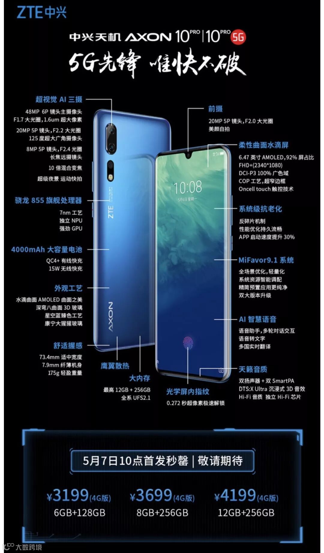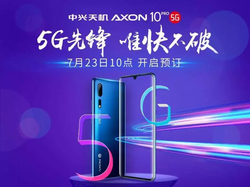 日前一大波5G手机入网or获得3C认证,现在中兴天机Axon 10 Pro 5G版率先宣布了有关上市的时间,将于7月23日即下周二上午10点开启预订。