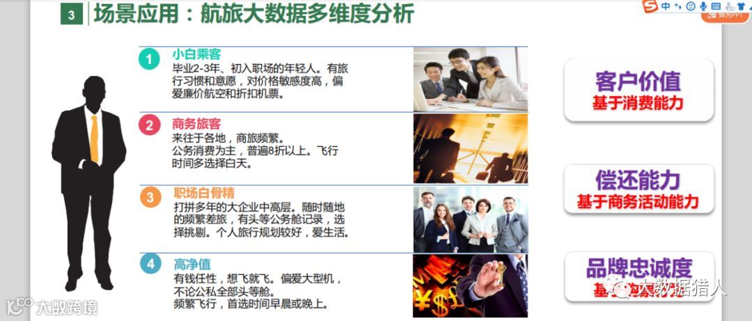 猎人这次仅从数据输出方面分析,对于数据拥有方体系内的生态合作,例如如何通过与金融机构合作,打造体系内用户资质分层,理财产品、信用卡产品、消费分期及电商合作等变现方式;场景链条的前后延展,为客户提供登机前后叫车及订酒店服务,空中后续会单独找个机构案例进行挖掘分析。