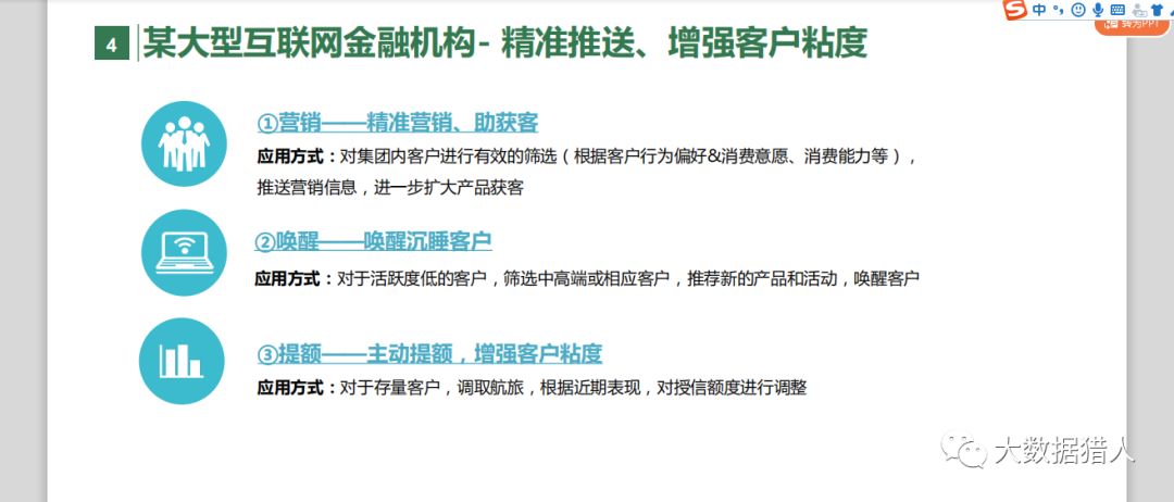 猎人发现只要用户量级达亿级以上,且与金融行业客群匹配度较高的,不管是什么数据都有可以做成数据产品的可行性。航旅及铁路出行数据的例子就非常有参考价值的,他们原则上统一掌握在政府背景的机构手上,如何数据出库,如何找到合适的变现方式,数据如何合规处理,如何进行数据产品的规划及需求场景的切入,数据效果的如何得到保障,这整个流程决定了数据的变现能力的强弱。