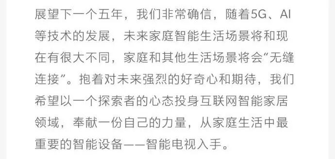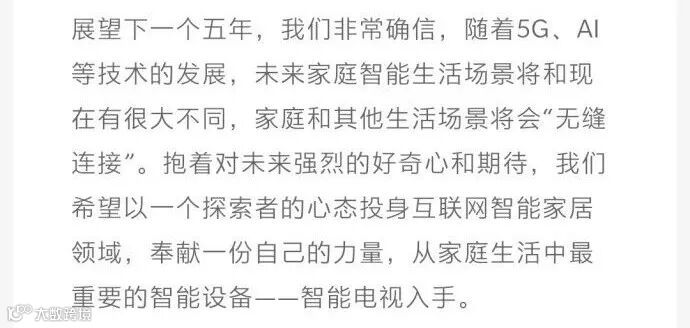 但同时也需要注意,从手机转变到进军电视领域,甚至想要拿下整个智能家居的生态链,势必也会遇到许多问题,如果只是贴牌那就罢了,如果是自己研发那就真的道阻且长了。