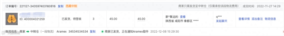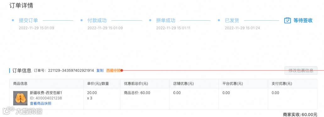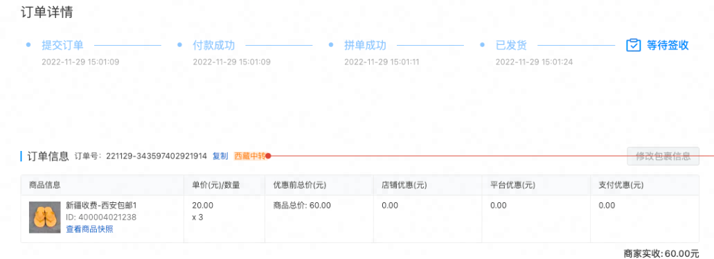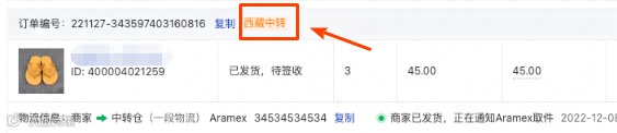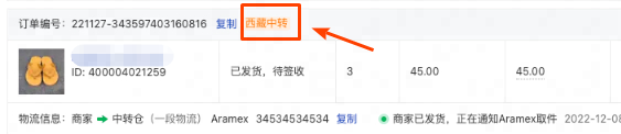 在商家后台订单列表、订单详情页皆可看到【西藏中转】标识。