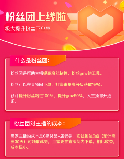 粉丝团为粉丝提供了丰富的特权,并且通过亲密度任务来提高粉丝黏性,以此帮助商家/达人提高粉丝gmv