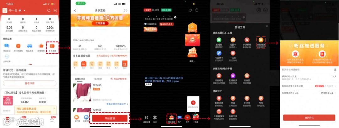 粉丝推送是帮助主播召回粉丝的工具,主播需要主动购买粉丝推送工具,系统将主播购买的金额包装为红包发送push消息给到粉丝,吸引粉丝进房。