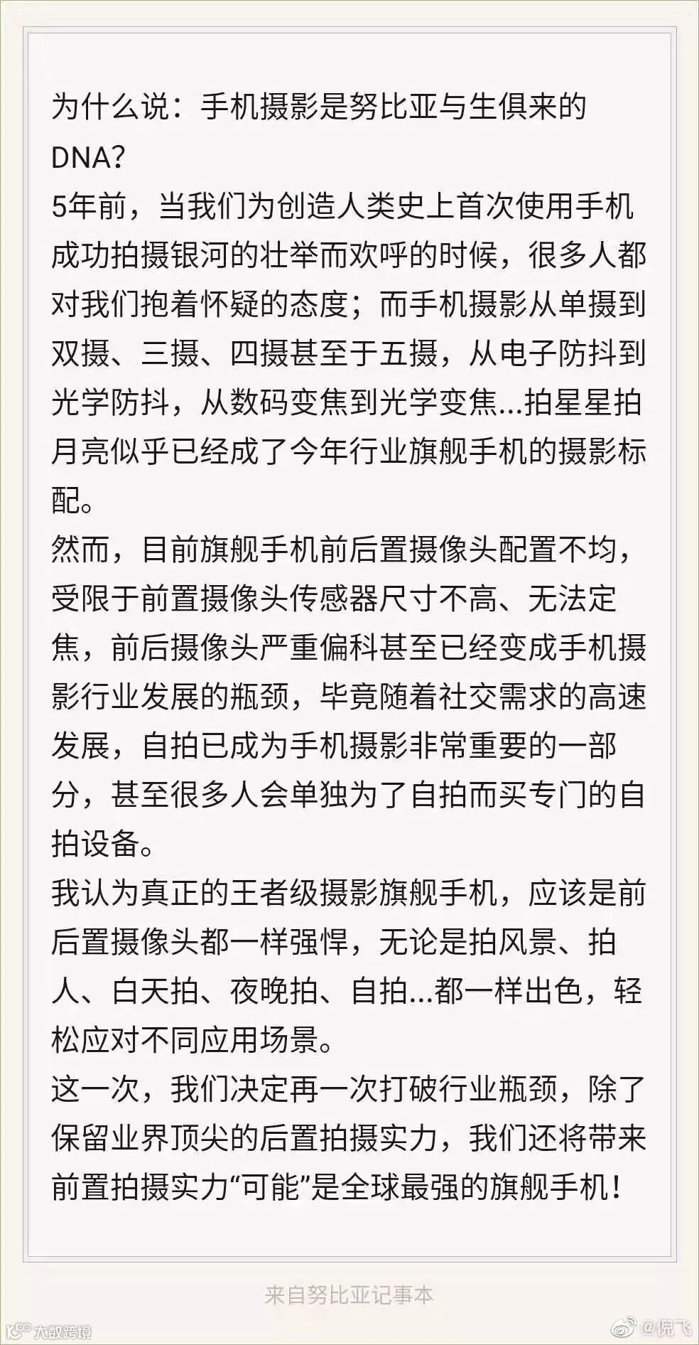 努比亚技术有限公司总裁,努比亚品牌联合创始人@倪飞 表示,努比亚Z20记录了2019年唯一一次日全食,王者级摄影旗舰手机。还放出了Z20拍摄的日全食。值得一提的是,此前机圈曾热议的拍银河、月亮,努比亚也很早就玩过,而且最早晒手机拍银河应该就是努比亚。而这次拍日全食,隔壁同样喜欢拍照的友商也没落下。
