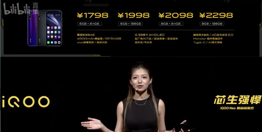 此外,iQOO Neo搭载骁龙845处理器,4500mAh电池,标配22.5W快充,没有44W快充,type-C口,保留3.5mm耳机孔,依旧配备超级液冷散热,4D游戏震感2.0,提供Monster编译增强技术,AI独立按键,本以为昨天和成都地铁互动是拿下了NFC,但遗憾依然不支持NFC。