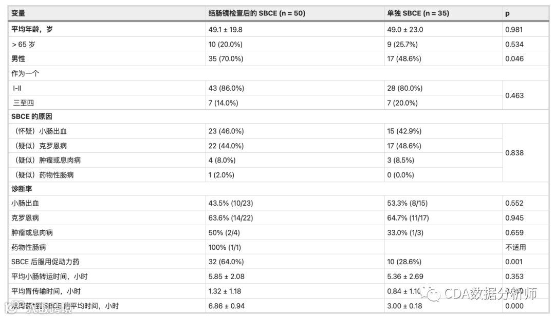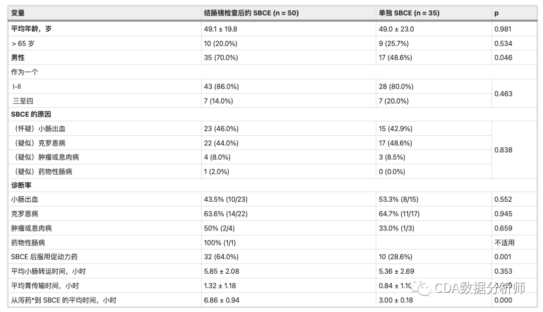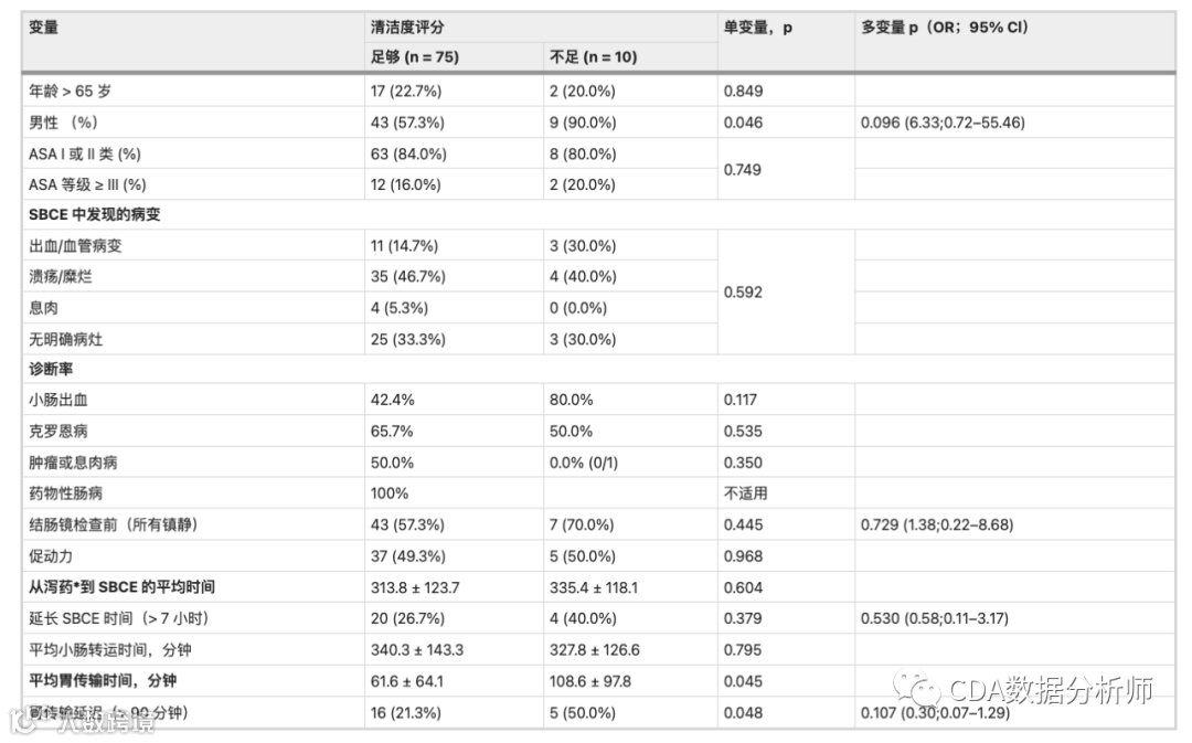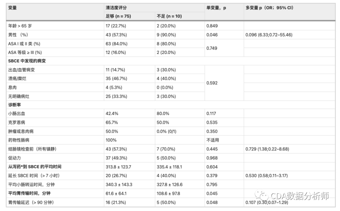 与结肠准备量表和小肠清洁评分的关联