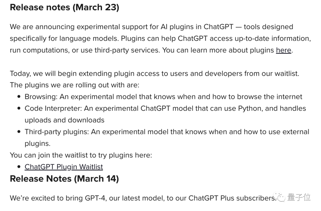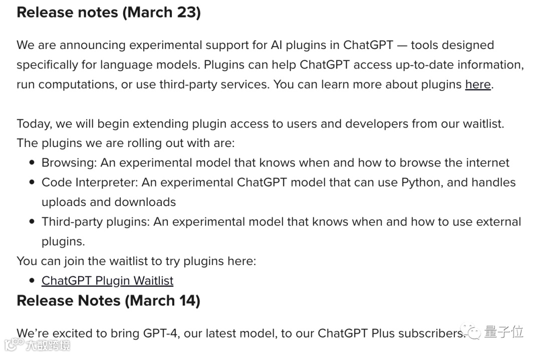 但自从3月14日GPT-4发布之后就没提到模型更新了,只有网页APP功能调整和添加联网模式、插件模式、苹果APP等方面的变化。