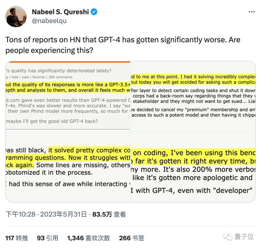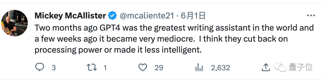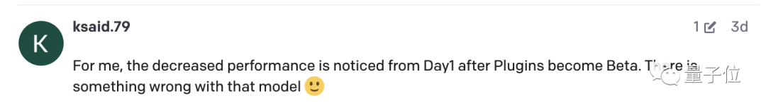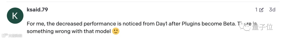 这位网友就表示,在他看来GPT表现变差正是从插件功能开始公测之后开始的。