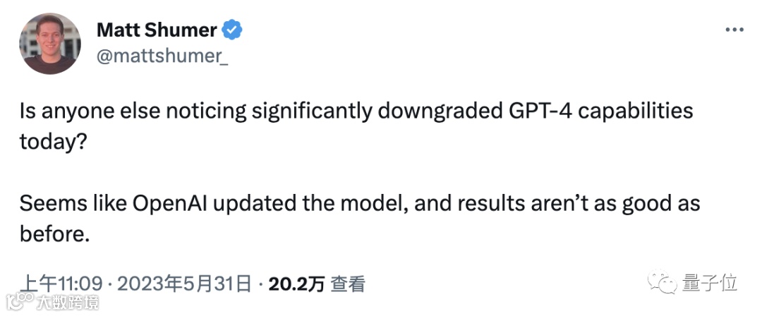在Twitter上较早提出这个问题的,是HyperWrite(一款基于GPT API开发的写作工具)的CEO,Matt Shumer。
