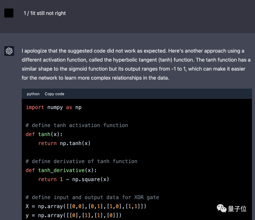 3月底,我们曾实验过让GPT-4“炼丹”,用Python写一个多层感知机来实现异或门。