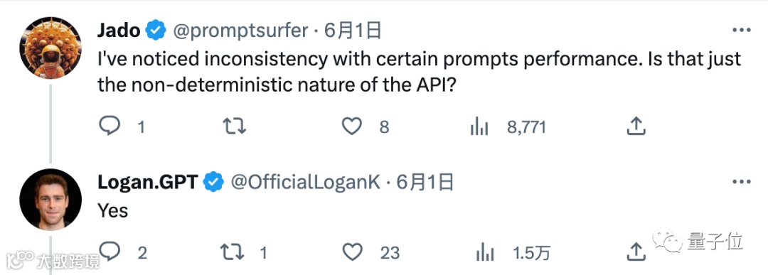 也有人向OpenAI员工询问是否模型本身没变,但推理参数是否有变化?