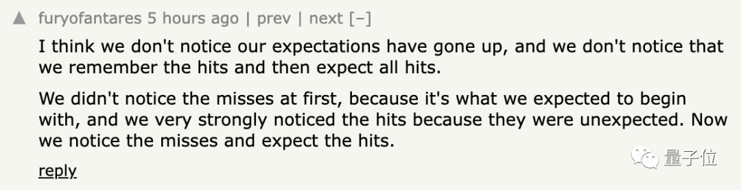 Hacker News上也有网友持相同观点,并补充到人们的关注点发生了改变,对GPT失误的敏感度更高了。