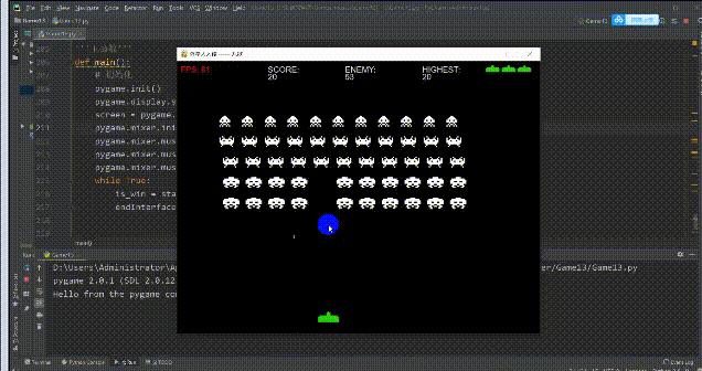 pygame.display.set_caption('外星人入侵 —— 九歌')