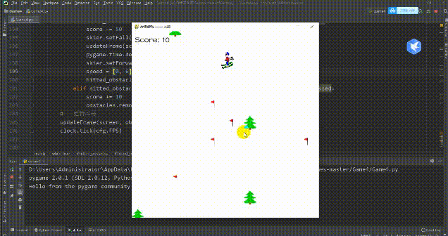 showText(screen, str(myaircraft.score), cfg.WHITE, font, 200, 24)