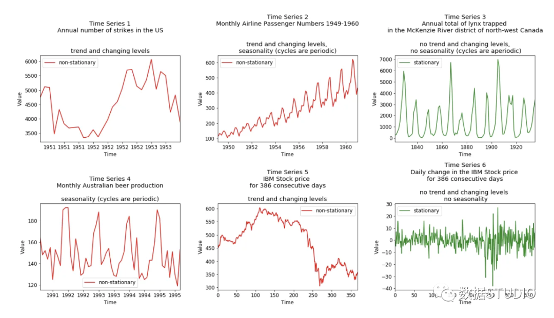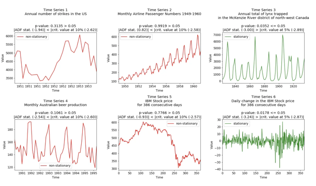 在时间序列预测中,具有恒定统计属性(均值、方差和协方差)且与时间无关的时间序列被描述为平稳的。由于稳定的统计特征,平稳时间序列比非平稳时间序列更容易建模。所以很多时间序列预测模型都假设了平稳性。