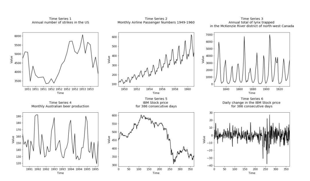 我们将创建几个示例,使用Hyndman 和 Athanasopoulos的时间序列分析教材《Forecasting: principles and practice》中提到方法解释平稳性的视觉评估,并扩展它们的用法,并解释使用单位根测试进行的平稳性测试。数据来自R的fma 包。