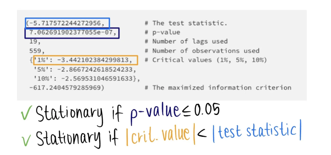 如果我们可以拒绝ADF检验的零假设,则时间序列是平稳的: