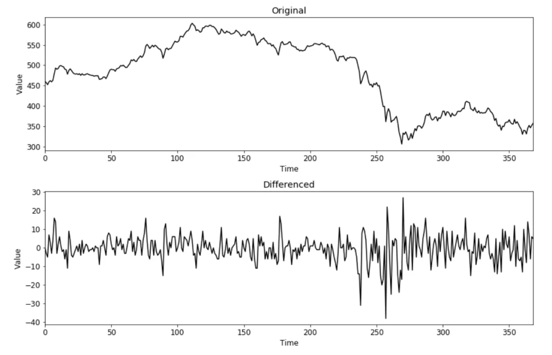 差分计算两个连续观测值之间的差值。它稳定了时间序列的平均值,从而降低了趋势