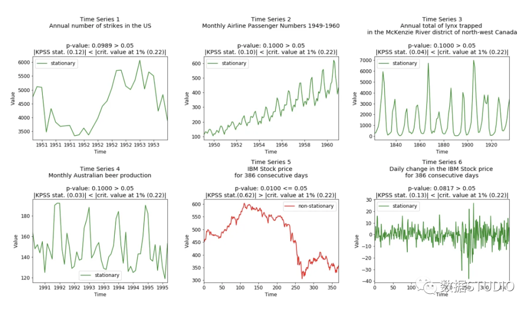 平稳性可以通过目测或统计方法进行检查。统计方法检查单位根,最流行的两种单位根测试是ADF和KPSS。这两种工具都可以在Python stattools库中找到。