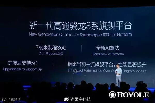 在10月31日的柔宇发布会上,官方就宣称,柔派手机搭载7nm骁龙8系旗舰平台,支持全新AI算法,扩展后支持5G,但当时未公布具体型号,现在确认FlexPai柔派搭载高通骁龙855处理器,电池3800mAh,运行基于Android 9.0深度定制的Water OS系统。