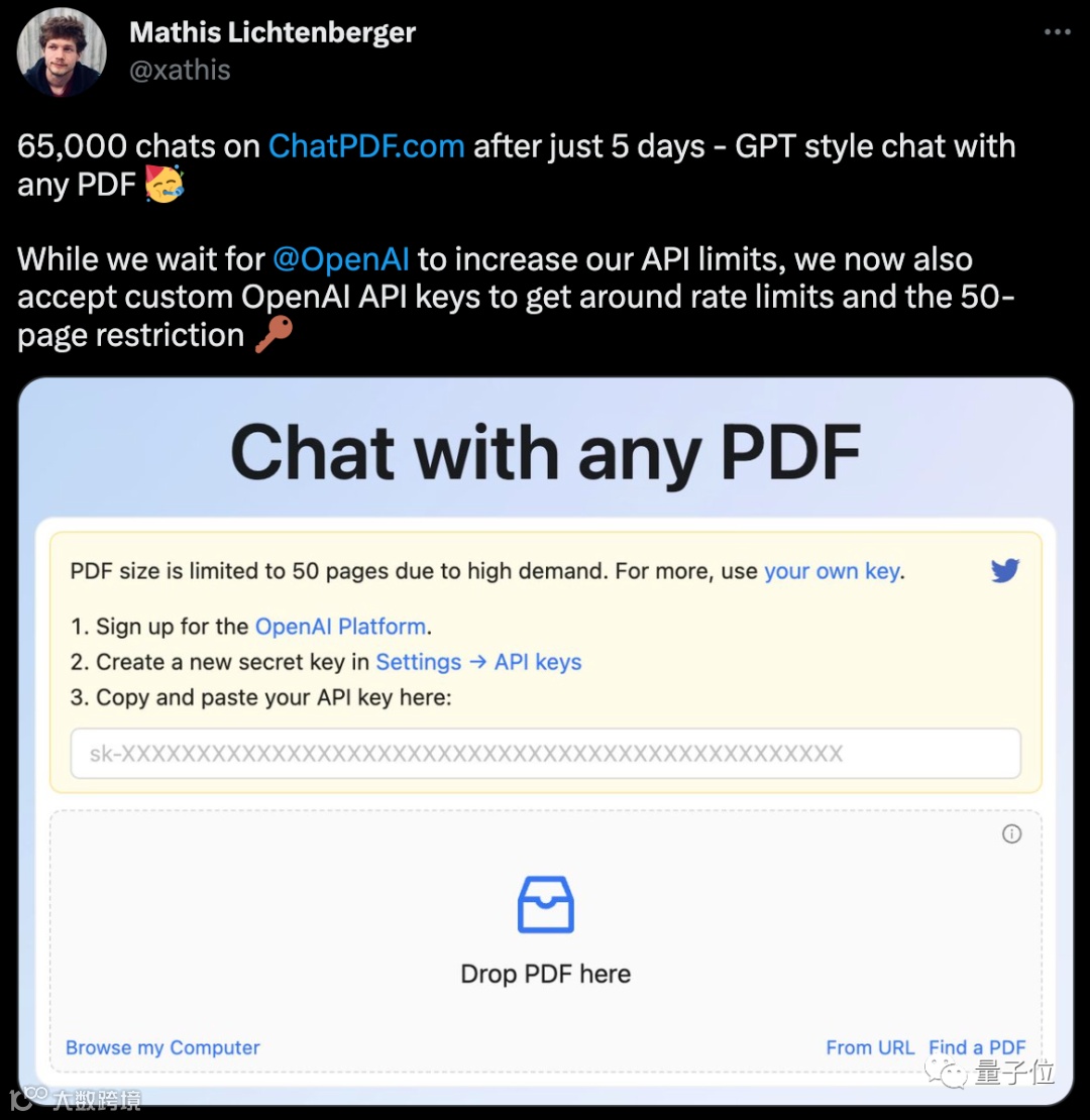 这就是最新爆火的ChatPDF,短短5天就分析了65000份PDF。