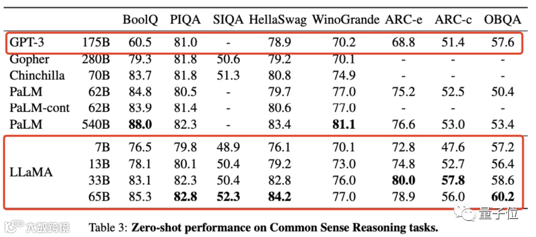 论文中,LLaMA有几种size、和GPT-3的性能对比结果,它都没有搞错。