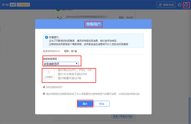 图4:拉黑举报买家入口