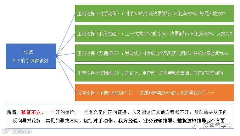 注意:做到这一步,才算做到了“提建议”。提建议不止是对着数字拍脑袋,而是有论点,有论据,最好有正反向论据的支持(如下图)。