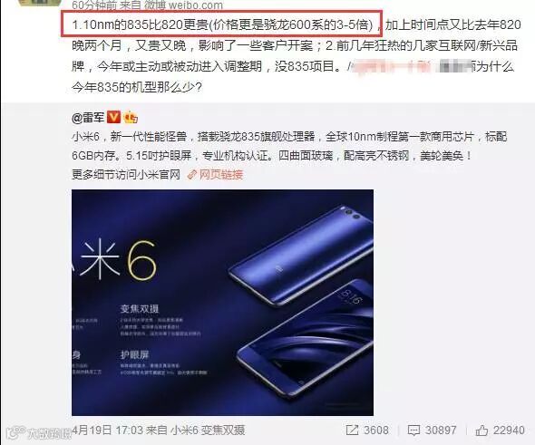 说到了骁龙835,就不能不说国行的骁龙835旗舰了,国行骁龙835旗舰只有小米6、一加5以及nubia Z17等寥寥几款,让人比较不好选择,为何今年骁龙835旗舰机型的型号如此之少呢?某知名分析师今天微博上透露了相关原因。