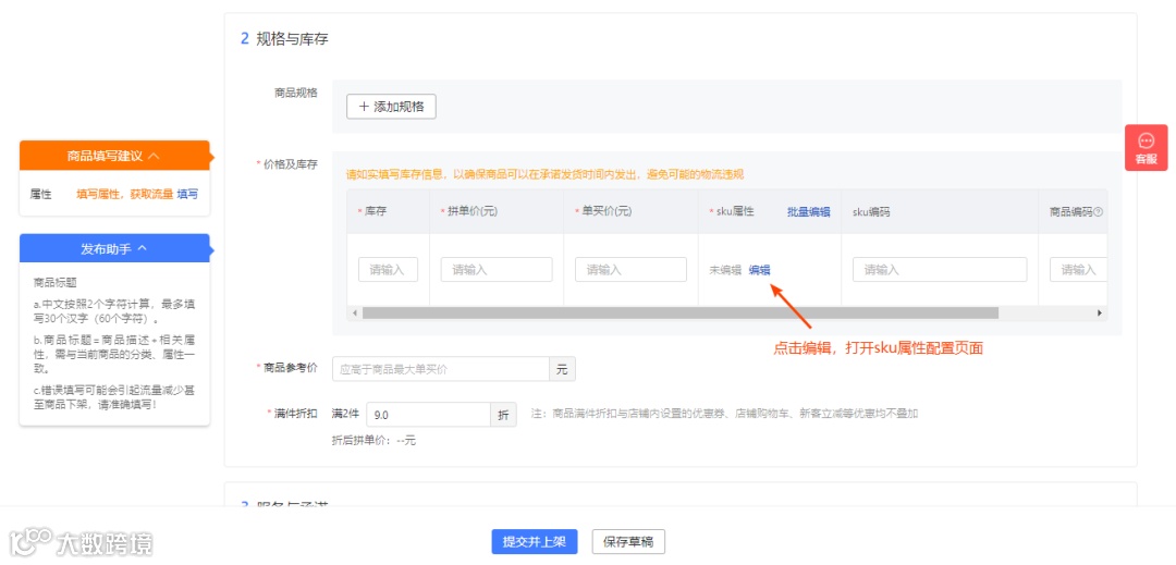 部分属性会落到SKU上,这些属性将需要在每个SKU上都进行填写;