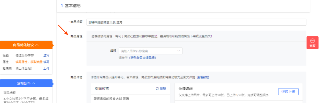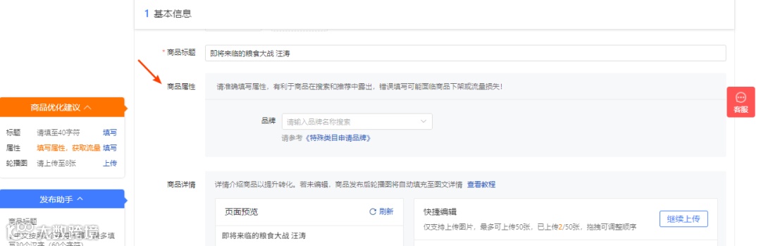 预填完后,页面上会提示“已自动识别并填写部分sku属性”;