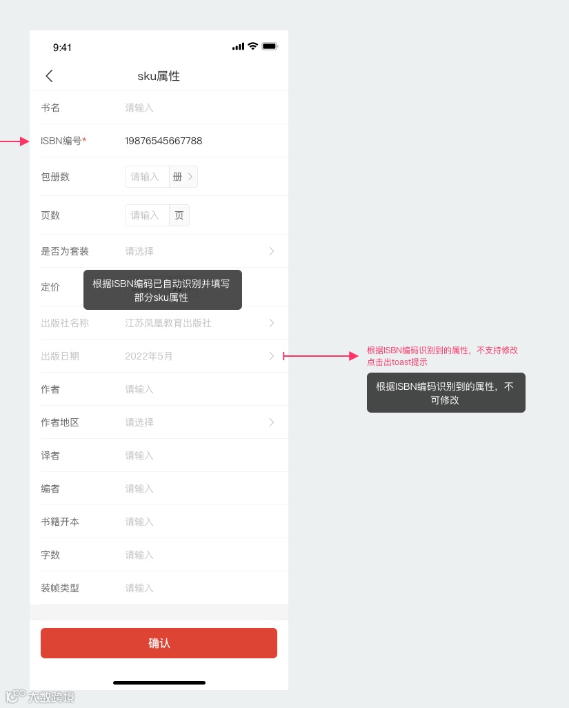 ②填写ISBN后,系统会根据该ISBN将书名、作者、出版社等重要信息预填上;