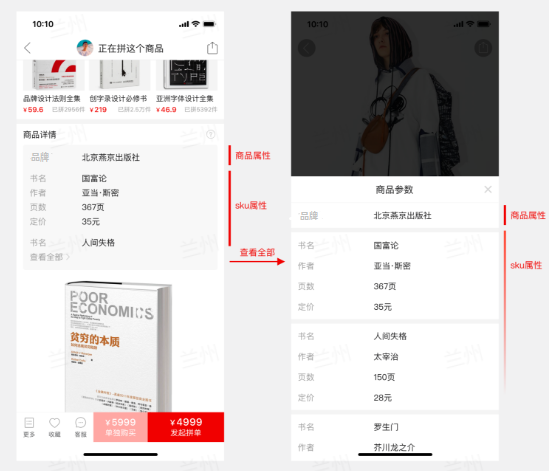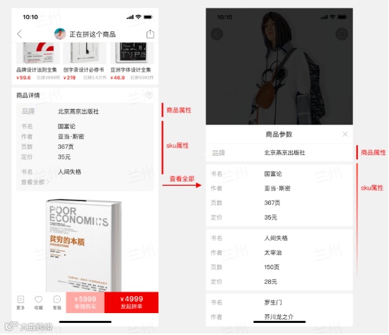 商详页也会分别展示每个SKU的属性信息,方便消费者了解每个SKU具体在销售什么书籍