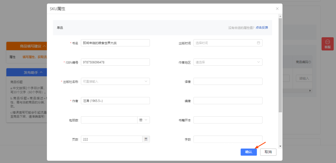 ①必须填写合法合规出版物正确的ISBN:系统会判断改ISBN是否在平台维护的图书库内,若不在库内的将无法发布商品;