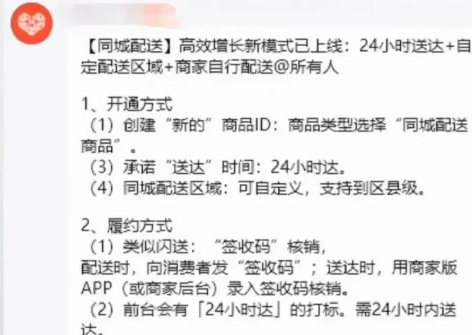 不仅如此,某多多相关业务人员近日发布消息称,礼品鲜花、低温奶和定制蛋糕等行业商家可以在拼多多设置同城配送,开通该功能后,商品会被贴上专属的“24小时达”标签,并获得流量扶持。目前只支持能24小时配送的商家。
