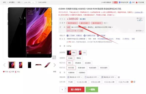 新版本的发布势必会影响到老版本的销量,虽然官方小米Note 2 4+64版本依然是2499元,但是第三方电商平台的价格已经出现了松动。今天1号店显示4+64版本的小米Note 2售价只有2299元,达到了历史新低。