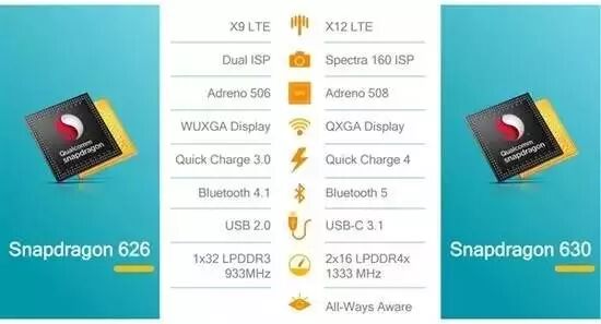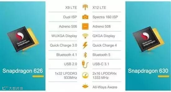 对于骁龙630,是骁龙626的升级版本,虽然还是4+4 A53八核架构,但14nm更加省电,GPU/ISP/DSP也是全面升级,同样搭载X12基带,而且开始支持UFS闪存,高通称综合性能提升了30%。预计在本月底发布,其中3GB1299元左右,4GB预计是1499元左右。